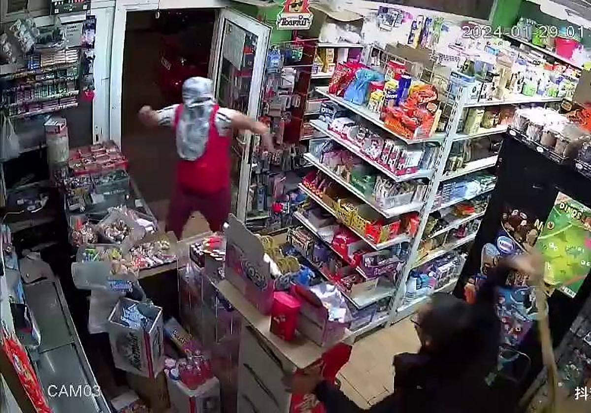 El comerciante trató de defenderse del robo esgrimiendo un bate de béisbol, pero en ese momento se inició un fuerte forcejeo en el que el asaltante llegó a sacar un arma blanca. El rifirrafe terminó cuando el asaltante logró arrebatarle el bate al dependiente, golpeándole con él. En ese momento la víctima consiguió huir de la tienda.