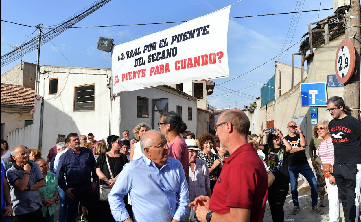 Unos doscientos vecinos del Raal participaron este sábado en una protesta para protestar y reclamar información precisa sobre el estado de tramitación del proyecto de construcción del puente del Secano, perdido hace año y medio, y plazos ciertos para su ejecución.