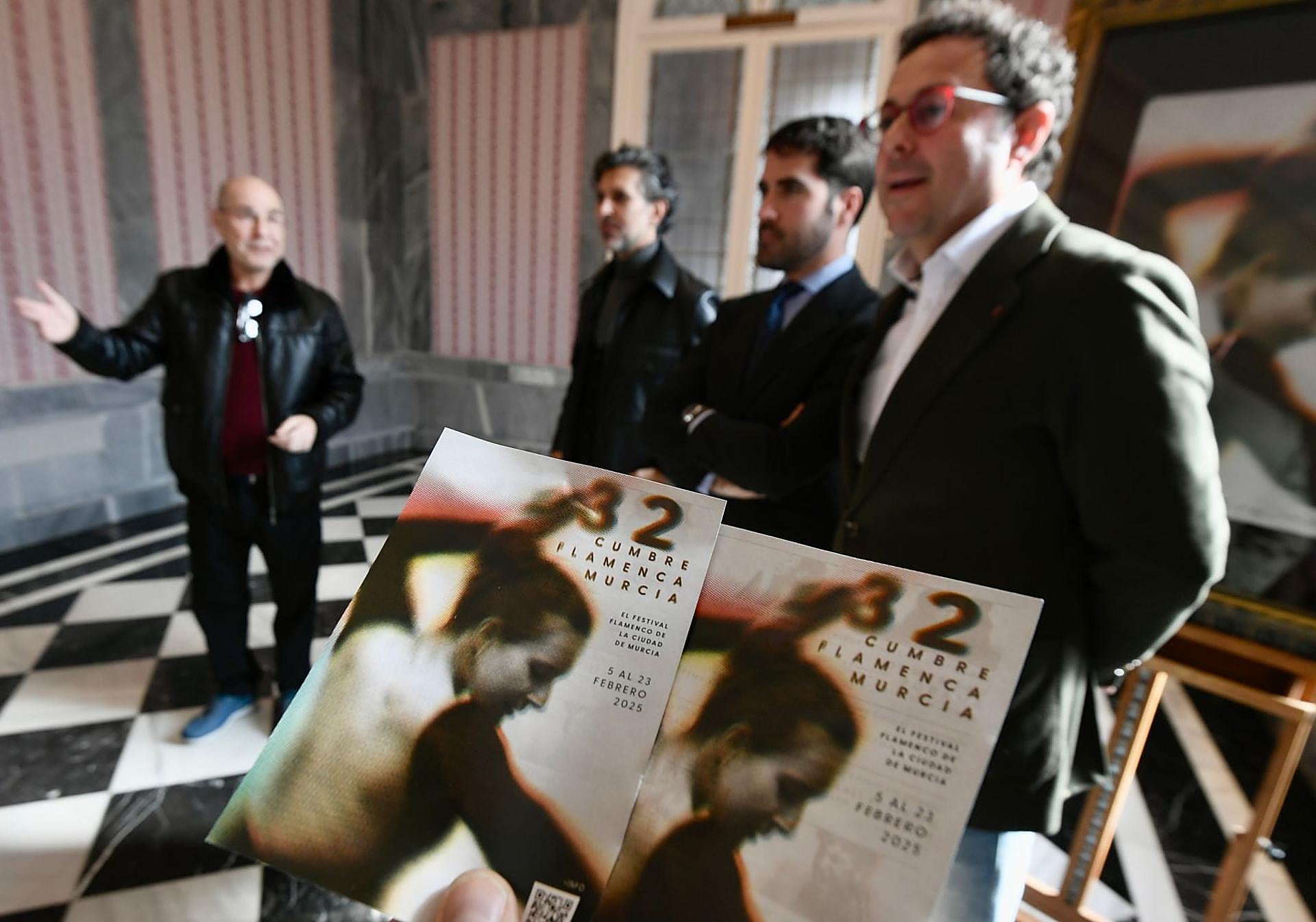 Antonio Parra, director de la Cumbre Flamenca de Murcia, insistió durante la presentación de la 32 edición del evento, este lunes, en el Salón de los Espejos del Teatro Romea, en que cada edición de esta cita musical es «un milagro» debido al escaso presupuesto de la Cumbre, que cuenta con el apoyo del Ayuntamiento de Murcia -«nos da un empujón que necesitamos»- y el ICA, en comparación con otros festivales como el Cante de las Minas de La Unión. Pese a ello, presume de una cuidada programación esta Cumbre Flamenca, que se celebrará del 5 al 23 de febrero y contará con los artistas Raimundo Amador, Mercedes Luján, Arcángel -que también participó este lunes en la presentación del evento- y Miguel de Tena.