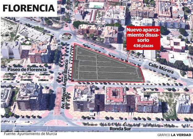 El Ayuntamiento de Murcia, a través de la empresa urbanizadora municipal Urbamusa, va a poner en marcha en breve la construcción de dos nuevos ... aparcamientos disuasorios de los cuatro anunciados, que se ubicarán junto a Ronda Sur y en la zona norte del municipio: el Florencia y el Atocha. Estos parkings intermodales tendrán 436 y 231 plazas, respectivamente, y saldrán a licitación la próxima semana. La intención es que estén operativos dos meses después del inicio de las obras.