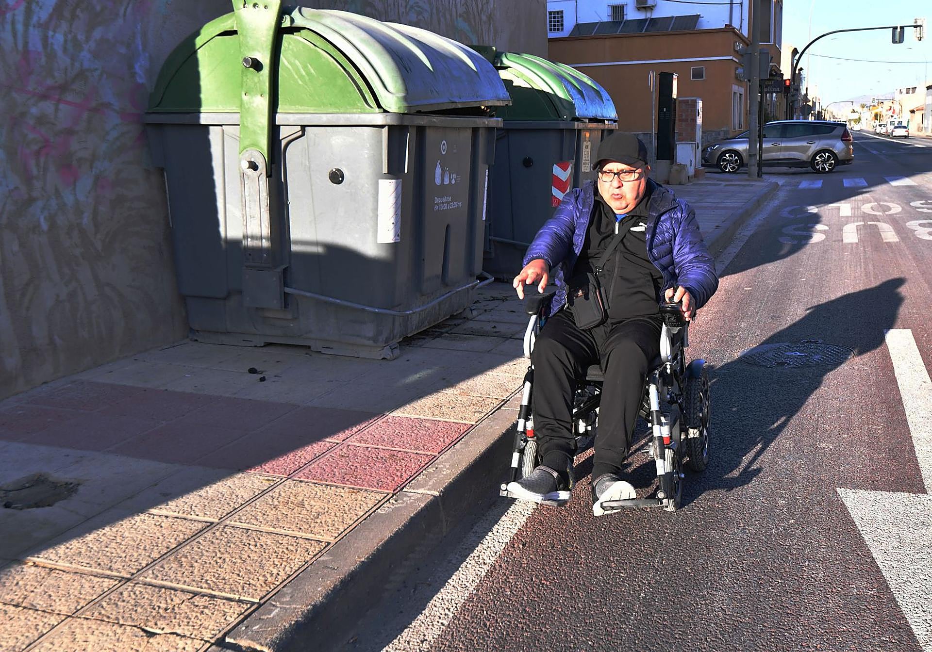 Sobre los obstáculos que se encuentra en su camino a la parada de autobús, resalta que «tengo que bajarme de la acera porque han instalado unos contenedores que me impiden el paso y no me queda más remedio que ir un tramo por la calzada por donde circulan los vehículos, con el riesgo que implica; falta accesibilidad en pedanías». Miguel Ángel reconoce que su nueva realidad le ha supuesto «un golpe muy duro». Desde entonces, cuenta que se ha sometido a cuatro operaciones en la pierna derecha y que está a la espera de una nueva intervención. «Me han detectado una infección y los médicos me han dicho que es probable que tengan que acabar amputándome la pierna», detalla.