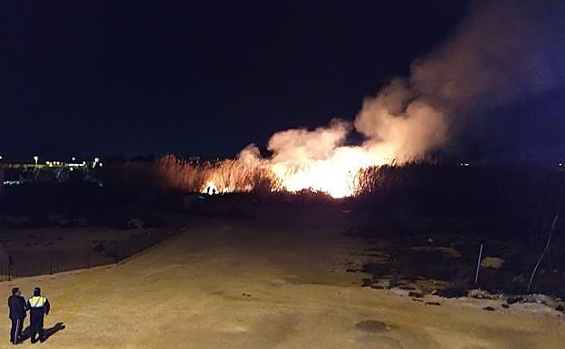 La Policía Local de Murcia ha declarado extinguido un fuego declarado en una zona de cañas entre el barrio murciano de La Flota y la pedanía de Zarandona, contra el que han luchado los bomberos desde las 18.20 horas de este domingo. Aunque inicialmente el incendio no parecía de gran gravedad, los fuertes vientos han avivado las llamas y han dificultado su control.