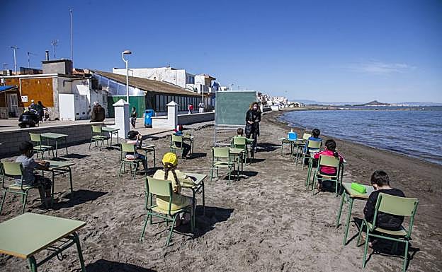 A la sombra de las moreras, los alumnos del colegio Puente de Doñana, en la pedanía murciana de La Albatalía, disfrutaron de buena parte de sus clases el curso pasado en el exterior del centro. Satisfechos con los resultados de la iniciativa, este año repiten, pero han querido darle una vuelta de tuerca al programa y perfeccionarlo. El traslado de toda la actividad lectiva al aire libre buscaba minimizar el riesgo de contagio entre los escolares, que pasaron buena parte del año académico con sus pupitres y gradas en el patio. «Pero ya tenemos experiencia, y la aplicación será más pedagógica. Ahora sabemos que hay contenidos que conviene impartir en el aula, y otros se acomodan mejor al exterior», explica el director del colegio, que ya llevaba años inmerso en programas centrados en la educación en la naturaleza y está adherido a la comunidad nacional Escuela a Cielo Abierto. Los escolares, que viven motivados las horas de clase que pasan a la sombra de los pinos, un paraíso en su nuevo mundo de mascarillas, distancias de seguridad y juegos limitados, no solo sacan sus clases a la naturaleza. «Aprenden a través de la naturaleza». Las sombras que proyectan los árboles pueden dar pie a estudiar los ángulos, y los cultivos en el huerto les ayudan a entender las proporciones, por ejemplo.