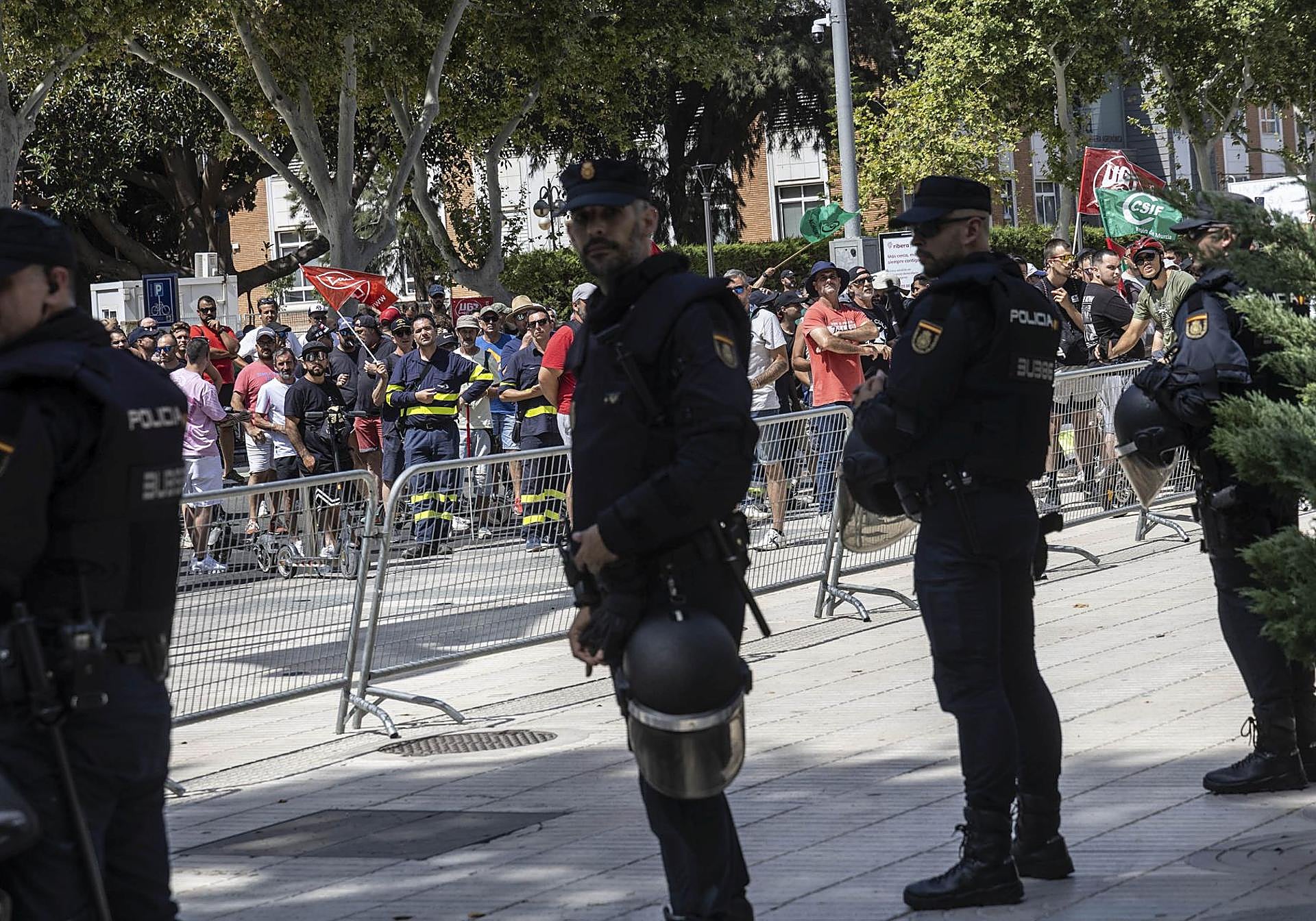 Ante un fuerte dispositivo policial, los operarios auxiliares de Navantia pidieron una reunión urgente con el presidente de la Comunidad, Fernando López Miras, que fue denegada por «problemas de agenda».