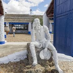 Al borde de lo que entonces era la N-IV se abrió al público hace más de medio siglo El Aprisco, una venta de queso manchego, que hoy es un clásico en ese mapa sentimental de altos en el camino de los conductores que cruzan La Mancha por la Autovía del Sur. Convertido en restaurante, el Aprisco ofrece al viajero una carta de comida casera (las gachas y el queso frito son su especialidad) y una chimenea siempre encendida que, además de iluminar nostalgias, se antoja como la más cálida de las bienvenidas. Su típica arquitectura manchega, el azul añil de sus fachadas, sus portones de madera remachados con hierros de otros siglos otorgan al lugar todo el sabor de una de esas pintorescas ventas del Quijote que tan bien describió Cervantes. Ahí sigue El Aprisco, detenido en el tiempo, al pie del kilómetro 134 de la A-4, y con él se mantiene impertérrito el Quijote pensante, la figura de piedra que recibe a los conductores en el centro del patio. Ese trozo de roca cervantina es seguramente el Quijote de carretera más fotografiado de todos los que pueblan esta España que hoy conmemora los 400 años de la muerte de don Miguel.
