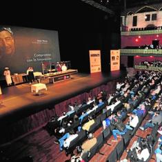 Las expectativas que Joan Roca, chef de El Celler de Can Roca, tres estrellas Michelin y segundo mejor restaurante del mundo según la revista 'Restaurant', levantó por su participación en las jornadas solidarias GastroTEA no fueron infundadas, a tenor de lo que se pudo ver en la charla que ofreció ayer por la mañana en el Teatro Circo. Antes de compartir un taller con los niños de la Asociación Asteamur -Asociación de Personas con Trastorno Autista de la Región-, Roca mostró su método de trabajo, al tiempo que fue mostrando algunos de los platos que se pudieron degustar en la cena benéfica que tuvo lugar en La Casa de la Luz. «No solemos hacer este tipo de eventos multitudinarios porque la mayoría de platos que elaboramos son complejos de multiplicar, pero estoy convencido de que el público sabrá entender las circunstancias», aseguraba el cocinero.