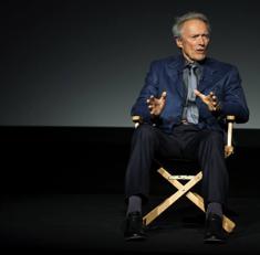 El director de cine Clint Eastwood habla durante un acto de promoción.