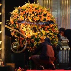 La urna ha sido llevada hasta el pedestal por su hijo, Iván Gabriel Aguilera, quien ha estado acompañado por el secretario de Cultura de México, Rafael Tovar y de Teresa, según ha informado el diario mexicano 'La Tercera'. El propio Tocar y de Teresa ha señalado que, debido a la afluencia de público, el Palacio de Bellas Artes estará abierto hasta las 19.00 horas del martes (hora local), lo que implica que el homenaje se extenderá durante unas 27 horas.