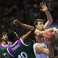 Fue remontar el Unicaja un 2-10 gracias a tres triples seguidos para sorprender con un parcial de 13-0, y el equipo malagueño ya fue imparable para Pablo Laso y los suyos. Sin rebote ofensivo (el Unicaja firmó 16 capturas bajo su aro) y, agarrado sólo a Felipe Reyes, el Madrid comenzó a sufrir el bombardeo constante de los locales, que abrieron la cancha a base de velocidad y rompieron desde fuera a un conjunto deslavazado e individualista asombrado con la efectividad del enemigo: 7 de 14 triples al descanso, fente a 5 de 15 de los madridistas. Kuzminskas, Nedovic y Thomas se encargaron de acabar con la moral de Laso y sus jugadores, porque aunque el Madrid también respondió en ese segundo parcial desde lejos, nunca tuvo solidez defensiva y no encontró más variantes ofensivas. Al contrario que el Unicaja, que tras el descanso también disfrutó del tiro y el descaro (3 de 4 triples) del canterano madridista Dani Díez, que no deja de progresar. Aunque los blancos estuvieron dentro del partido hasta el intermedio (46-37), nunca dio el Real Madrid sensanción de poder competir de verdad contra un Unicaja más fresco de piernas y cabeza al que su gran porcentaje anotador fue dando alas, mientras los todavía campeones que este sábado cederán su trono se iban hundiendo aún má, comprobando que no aflojaba la eficacia en ataque del enemigo.