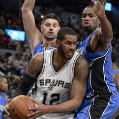 LaMarcus Aldridge (c) de Spurs ante Serge Ibaka (d) de Magic.