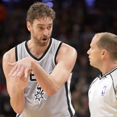 Pau Gasol se queja de una decisión arbitral.