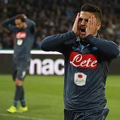 Los jugadores del Nápoles se lamentan durante la derrota en Copa.