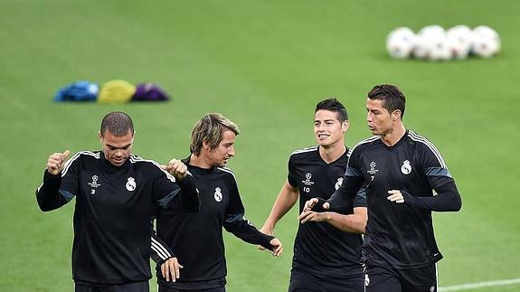 Real Madrid: Casillas; Carvajal, Varane, Sergio Ramos, Marcelo; Kroos, Isco, James; Bale, Cristiano Ronaldo y Benzema o 'Chicharito'.