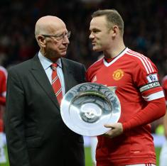 Presentes en las gradas de Old Trafford, Charlton, de 79 años, y el técnico con el que debutó Rooney, Sir Alex Fergusson, festejaron el tanto de Rooney.