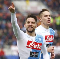 Un doblete del belga Dries Mertens ante la Roma (2º) dio este sábado la victoria al Nápoles (3º) por 2-1, lo que permite a la Juventus de Turín acercarse a su 33º Scudetto si gana el domingo al Udinese (14º) en la 27ª jornada de la Serie A.