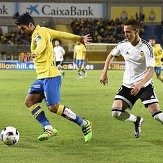 El gol resultó impactante para los canarios, que perdieron el aire al duelo. Muchos nervios a la hora de mover el balón y llegan las imprecisiones. 'Vísteme despacio, que tengo prisa', parecía recordarles Quique Setién a los suyos desde la banda. La distancia para la prórroga en cualquier caso era corta y la presencia de Momo, puntal a balón parado y en disparos lejanos, mantenía la fe de la hinchada amarilla. En dos servicios laterales del ídolo local se pidió penalti por manos de Abdennour y Aythami rozó el larguero en un cabezazo. Tuvo la sentencia el Valencia varias veces antes del descanso, pero adoleció de acierto. Primero la cuchara de Negredo tras la salida desesperada de Lizoain se fue desviada aunque Nili llegó a tiempo para despejar en el área pequeña, Parejo obligó a Lizoain a sacar una buena mano para forzar el córner y por último Mustafi casi completa de cabeza un buen servicio desde la esquina de Piatti.