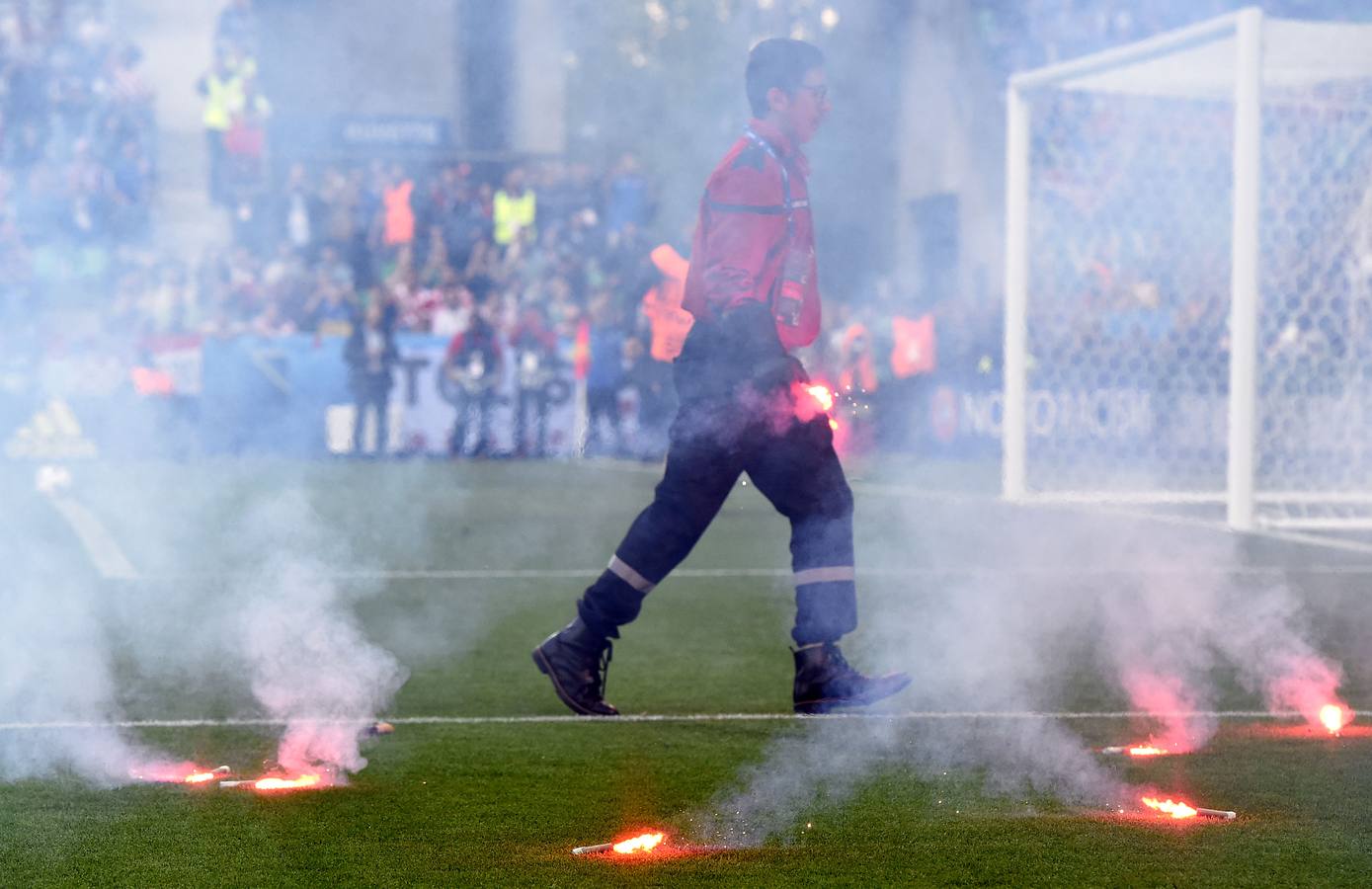 Para el partido ante España, la policía francesa ha redoblado los efectivos para controlar la introducción de artefactos pirotécnicos e intentar en lo posible detectar a los nazis de la Torcida Split y los Bad blues boys', las dos bandas que provocaron los incidentes en Saint-Étienne, donde arrojaron una docena de bengalas al terreno de juego, y que han amenazado con actuar de nuevo frente a España.