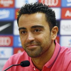 Xavi Hernández, durante una rueda de prensa con el FC Barcelona.