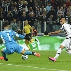 Simone Zaza (d) bate a Sergio Rico (i) en el segundo gol de la Juventus.