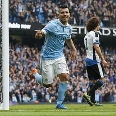 Sergio Agüero celebra uno de sus goles ante el Newcastle.