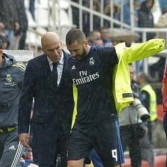 Zidane le pregunta a Benzema tras cambiarle por lesión en Vallecas.