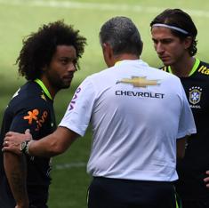 Marcelo y Filipe dialogan con el seleccionador brasileño.