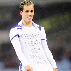 "Siempre fuerte. D.E.P Pablo Ráez", rezaba un mensaje en la camiseta que llevaba bajo su elástica el delantero malagueño y que mostró tras anotar el tanto que abría la cuenta para el cuadro dirigido por Eusebio Sacristán. Una acción que el árbitro del partido, Alberto Undiano Mallenco, sancionó con cartulina amarilla en virtud de lo estipulado por el reglamento para estos casos.