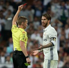 El capitán del Real Madrid vio la cartulina roja en el minuto 77 del encuentro ante el Barcelona, tras una entrada con los dos pies por delante a los tobillos de Leo Messi. Hernández Hernández decidió expulsar al central blanco, en una decisión que Ramos no aceptó de buen grado, siendo generosos.