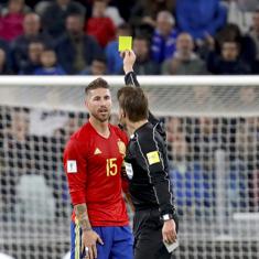 El alemán Felix Brych amonesta a Sergio Ramos.