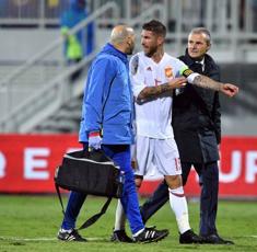 Sergio Ramos, capitán del Real Madrid y la selección española, sufrió ante Albania un esguince en el ligamento lateral de su rodilla izquierda, como confirmó el doctor Óscar Celada, que aseguró que el tiempo de baja irá en función del grado del percance, aunque el defensa deberá estar al menos un mes alejado de los terrenos de juego.
