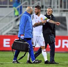 Sergio Ramos deberá estar alrededor de un mes y medio alejado de los terrenos de juego a causa de un esguince de grado 2 en el ligamento colateral medial de su rodilla izquierda, sufrido la noche del domingo durante el Albania-España disputado en Shkoder. Aunque el parte médico emitido por el Real Madrid afirma que el defensa sevillano está "pendiente de evolución", Sergio Ramos estará de baja unas seis semanas, por lo que se perderá cuatro partidos de Liga y dos de Champions, además del España-Macedonia del 12 de noviembre.