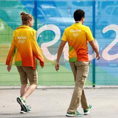 Voluntarios para los Juegos Olímpicos pasean por las calles de Rio.