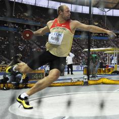 Robert Harting señala al presidente del Comité Olímpico Internacional