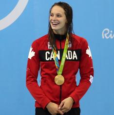 Con 16 años, la canadiense comparte oro con Simone Manuel en los 100 libres y acumula cuatro medallas