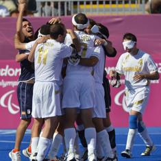 El equipo paralímpico español de fútbol para ciegos en Londres 2012.