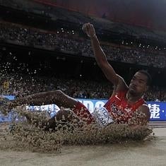 El estadounidense se queda a ocho centímetros de la vieja marca de Jonathan Edwards en el triple salto