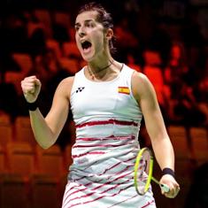 Carolina Marín, actual campeona olímpica, dos veces campeona mundial (2014 y 2015) y dos de Europa (2014 y 2016), se apuntó la primera manga por un rotundo 21-10 tras dominar el marcador desde el inicio