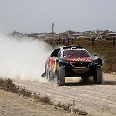 Sebastien Loeb, Stepháne Peterhansel y Carlos Sainz mantuvieron un pulso al límite durante los 527 kilómetros de etapa especial. Tres de los cuatro corredores de Peugeot (Despres sigue descolgado) llegaron prácticamente juntos a la meta, tras una jornada en la que llegaron a ir líderes en algún momento. El primero fue Loeb, que sufrió en sus carnes lo que supone ser atacado por Sainz. El madrileño, en los puntos de control de mitad de etapa, pudo ir más rápido que los franceses hasta colocarse al frente de los tiempos, pero quedarse atrapado tras el polvo de Loeb le acabó costando el primer puesto. La lucha entre ambos fue aprovechada por un Peterhansel que, perro viejo, hincó el diente en los últimos kilómetros del día para llevarse la victoria.