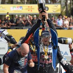 El francés Sebastien Ogier celebra su título mundial en Salou.