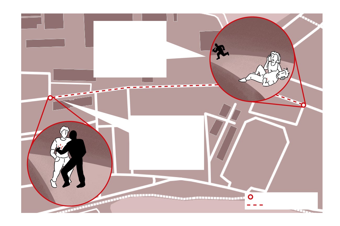 El chico contó que su primo, de 15 años, había pasado al lado de dos jóvenes, a los que conocía solo de vista, y cuando estaba a su altura, uno de ellos le gritó su nombre y continuó andando junto él, a su paso. En un momento dado vio un gesto que le parecía que le daba un abrazo, pero su primo se giró diciendo: «Me ha pinchado».