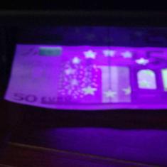 La vista también puede ayudar al reconocimiento de un billete falso. El verdadero debe contener una marca de agua en la parte izquierda del anverso, mediante la cual se puede apreciar una imagen difusa que será más fácilmente reconocible sobre una superficie oscura. Así como, también al trasluz pueden diferenciarse la banda oscura que atraviesa de forma vertical por el centro el papel y el motivo de coincidencia; una marca en la esquina superior izquierda del anverso y otra en la esquina superior derecha del reverso que deben coincidir para crear el número 50. La gran diferencia incluida en el nuevo, es un holograma en el que se reconoce un símbolo de Europa que se transforma en transparente al trasluz .
