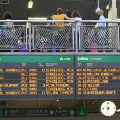 Panel con anulaciones y cancelaciones en la estación de Atocha.