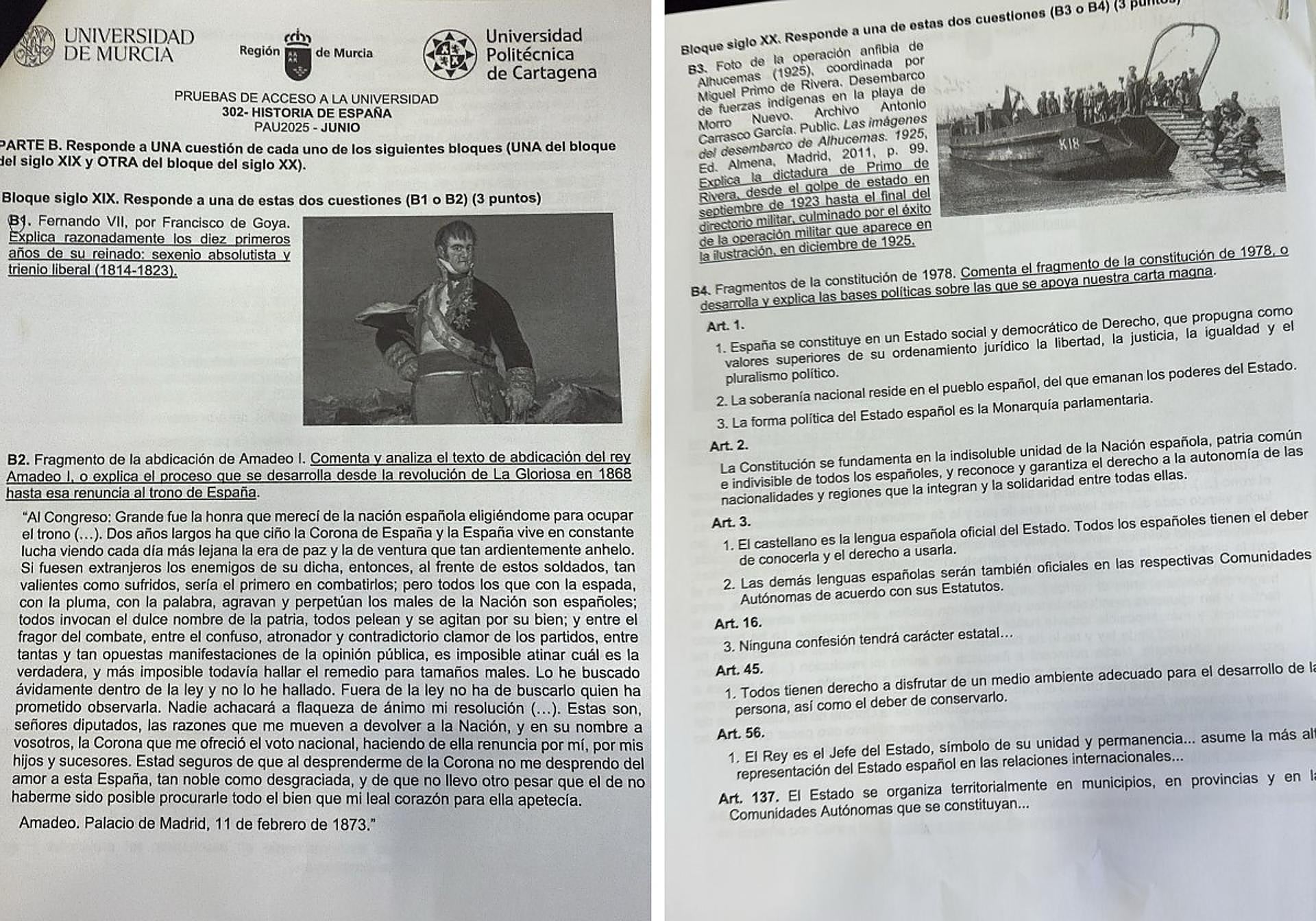 En el primer caso, debían elegir entre explicar el sexenio absolutista y el trienio liberal o comentar y analizar un texto sobre la abdicación de Amadeo I.