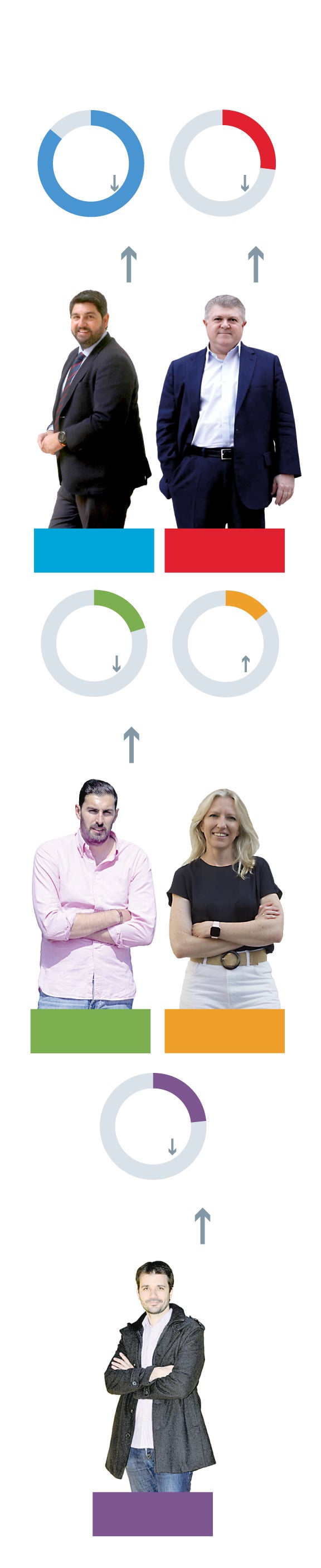 A José Vélez, que es delegado del Gobierno en la Región de Murcia, lo conoce casi la misma gente que al coordinador autonómico de Podemos, a quien identifican un 23,5% de los encuestados, con una nota de 4,7, levemente superior a la del secretario general de los socialistas murcianos. Sus propios votantes le dan una puntuación del 5,6. La encuesta no pregunta por María Marín, portavoz en la Asamblea y posible candidata autonómica de la formación morada.