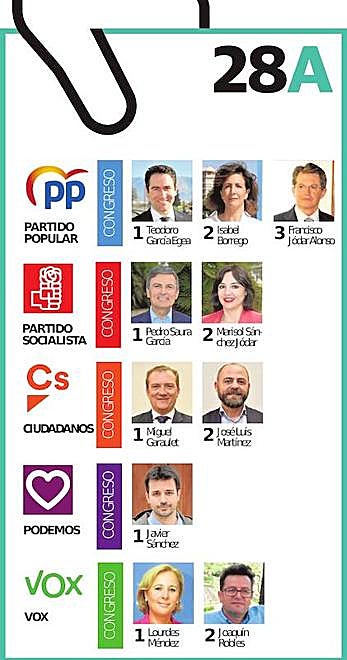 Las elecciones del 28-A dejarían al PP como ganador en la Región, pero encumbrarían a un segundo triunfador: Vox. El partido que preside Santiago Abascal se colocaría como tercera fuerza política gracias al 19% de votos de los murcianos, lo que le permitirían obtener dos escaños, igual que el PSOE y Ciudadanos.
