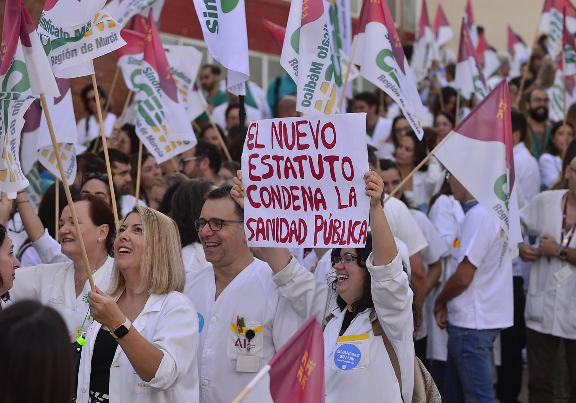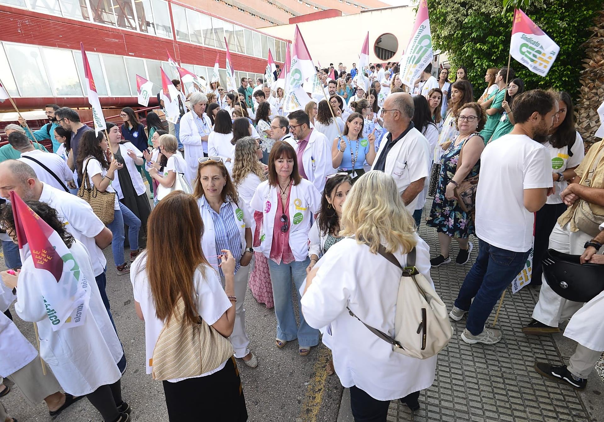 Los profesionales se concentraron a primera hora de la mañana a las puertas de todos los centros sanitarios para exigir al Ministerio que les «escuche» y «abra un ámbito de negociación propia» que ponga fin al actual modelo de jornada, basado en guardias obligatorias que representan «un régimen de semiesclavitud», denunció María José García Mateos, secretaria general del Sindicato Médico (Cesm) en la Región de Murcia. «Lo que pedimos es que mejoren nuestras condiciones laborales, no solo por nosotros, sino por los pacientes, porque en jornadas de 24 horas no puedes atender igual a un paciente a la una de la tarde que a las cinco de la mañana. Y, encima, esas horas las pagan por debajo de la hora ordinaria», explicaba a las puertas de La Arrixaca Miguel Castejón, médico del servicio de Urgencias.