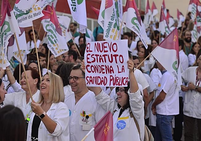 El Sindicato Médico mantiene con la huelga de este viernes su pulso con el Ministerio por un nuevo Estatuto marco muy diferente del que plantea la Administración. De momento, las posturas están muy alejadas. La última reunión, celebrada este martes, terminó sin acuerdo. El presidente del Sindicato Médico en la Región, Clemente Casado, lamentó que «ni siquiera nos hayan ofrecido un calendario de negociación».