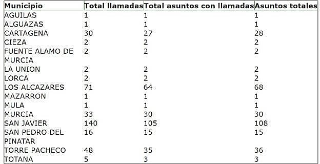 Llamadas al 112 por municipios desde las 21 horas del día 2 hasta las 20 del día 3
