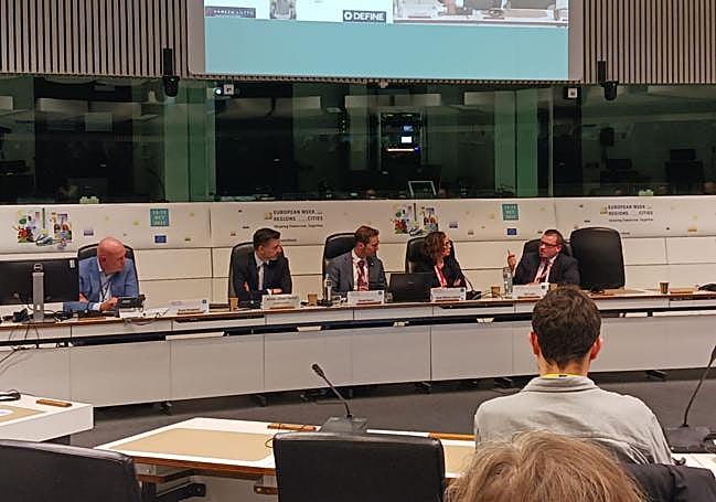 El director general de Unión Europea de la Comunidad, Adrián Zittelli, participó en un debate sobre defensa dentro de la Semana Europea de las Regiones y Ciudades, junto a representantes de otros territorios como la mencionada Häme (Finlandia); East Netherlands (Países Bajos); Bretaña (Francia) y Tapa (Estonia).