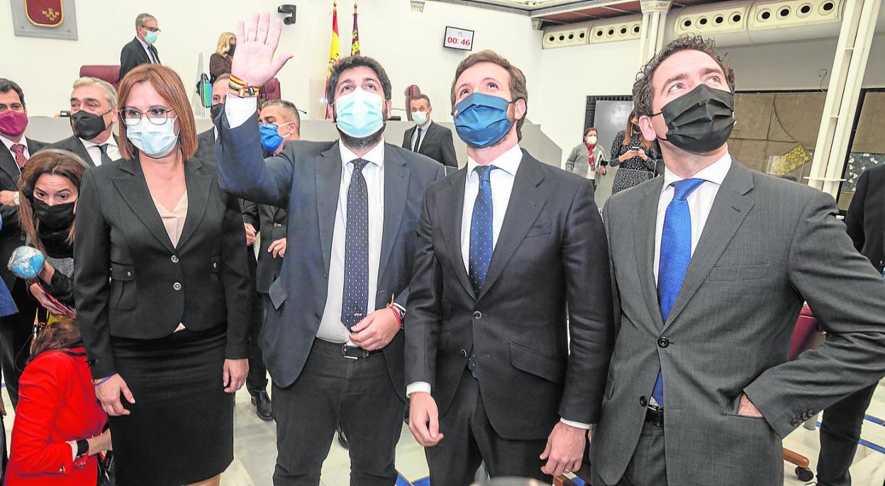 A la votación acudieron el presidente nacional del PP, Pablo Casado, y su secretario general, Teodoro García Egea. Además de apoyar a López Miras, escenificaron en Cartagena el inicio de su reconquista ideológica, su campaña para la reunificación del centroderecha español, que es el argumento al que se acogieron los tres expulsados de Vox para apoyar a los populares en este proceso con gran trascendencia en el tablero político nacional. De la fracasada moción de censura en Murcia salen elecciones anticipadas en la comunidad de Madrid y una cuestión de confianza al presidente popular de Castilla y León, Alfonso Fernández Mañueco. Pero lo más trascendente es la descomposición de Ciudadanos como partido político con la dimisión de diputados, senadores y concejales en toda España y el paso de muchos de ellos al PP.
